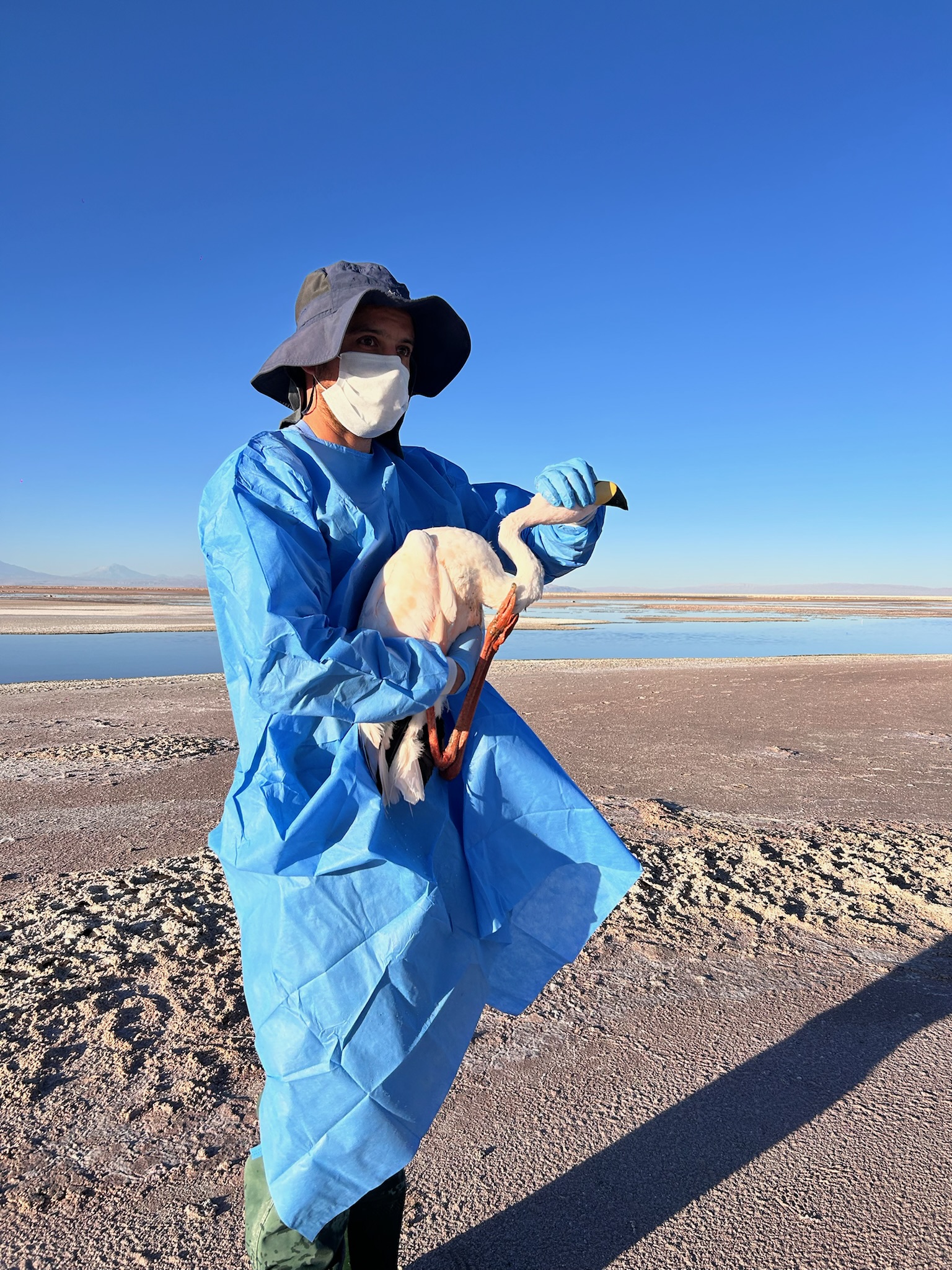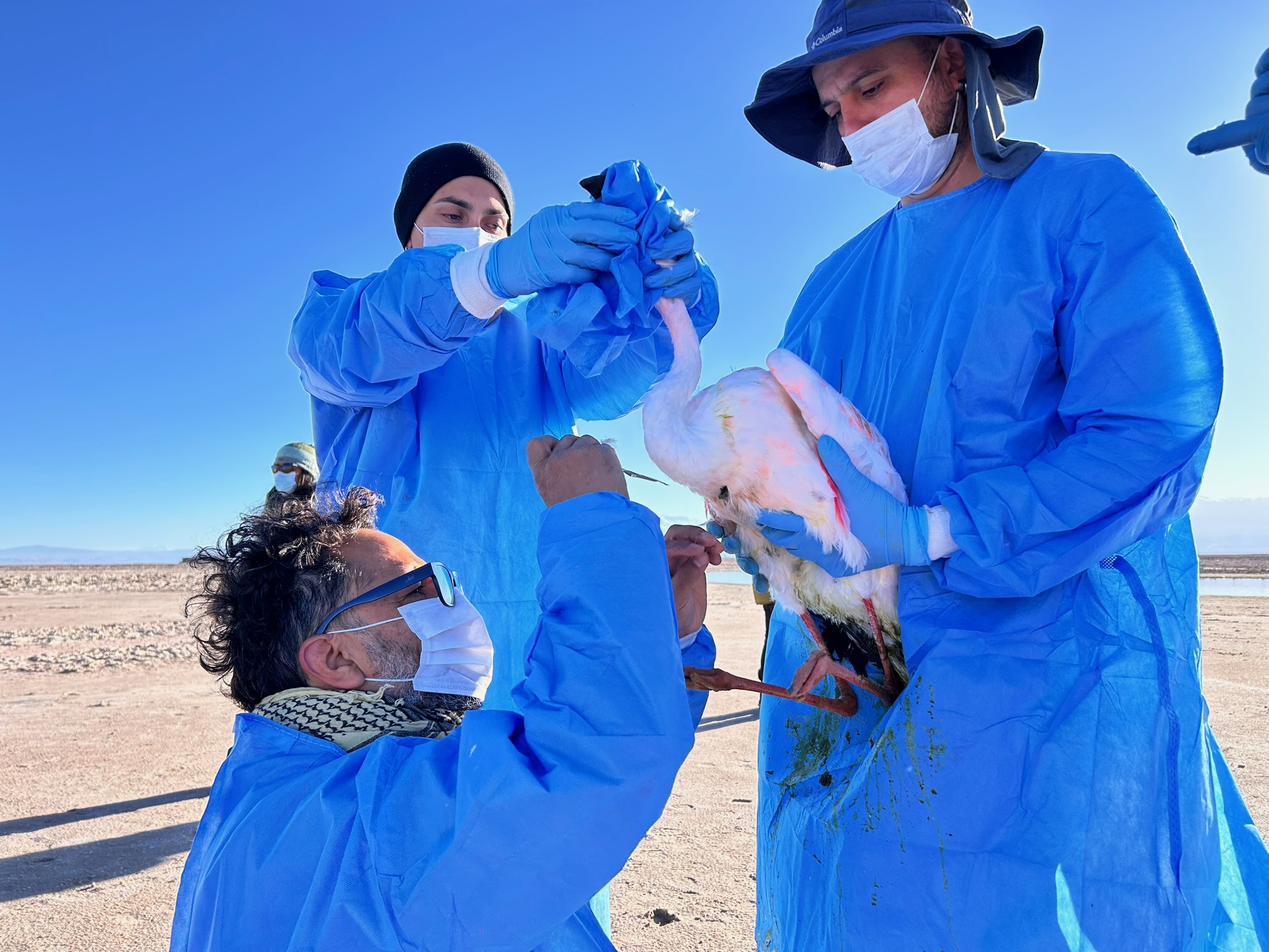 Durante la Semana del Flamenco 2025, el equipo multidisciplinario del Zoo Nacional, integrado por biólogos, médicos veterinarios y guardafaunas especializados en ornitología, instaló cuatro transmisores satelitales en la Laguna Chaxa, dentro de la Reserva Nacional de Flamencos, y se equiparon dos flamencos de James y dos andinos con esta tecnología.