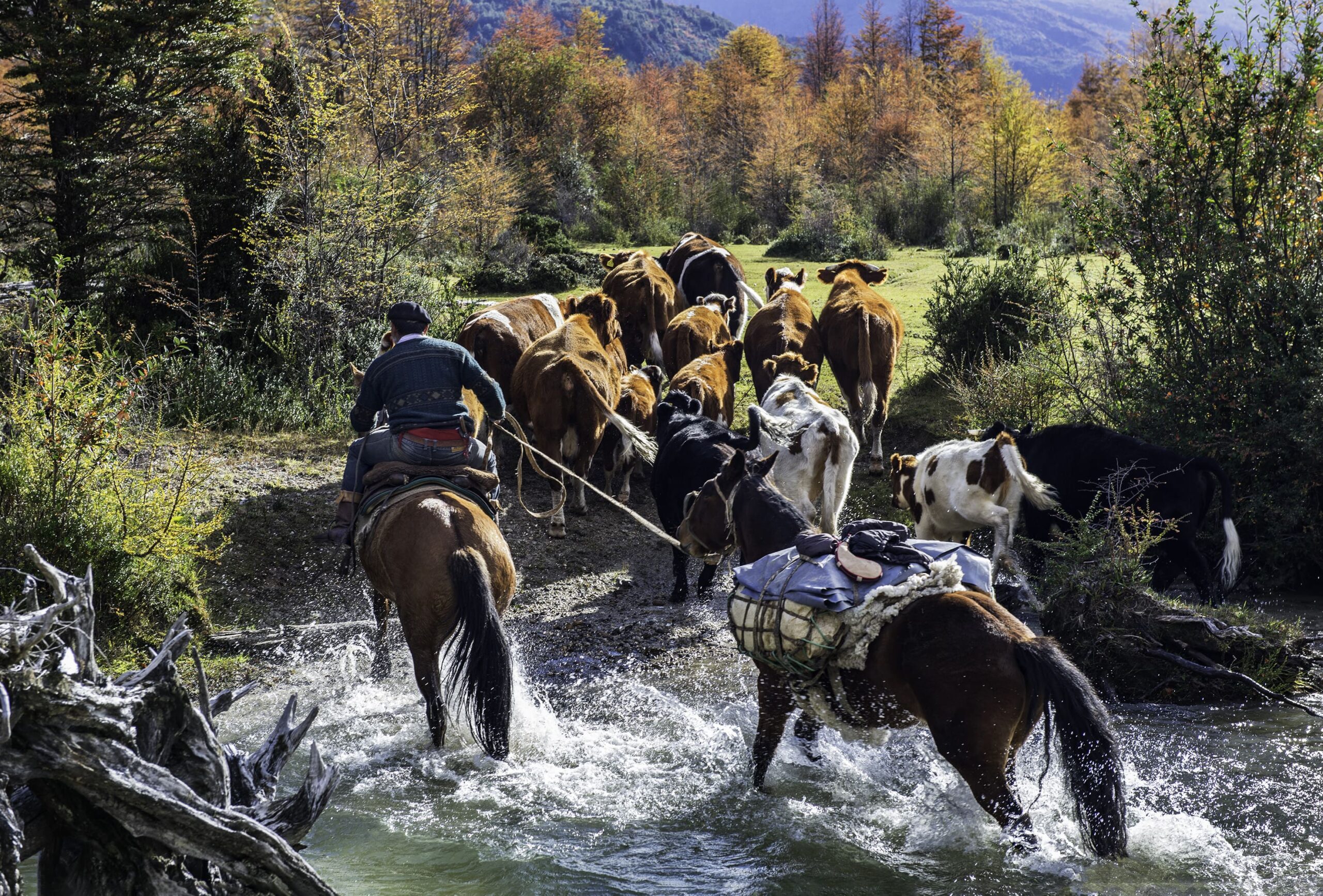 Entre tantas conversaciones con los pobladores, originó el específico interés por la ruta del Baker, un antiguo trayecto que unía Argentina con el océano Pacífico en la Patagonia Chilena y que, durante décadas, fue el camino de arrieros, comerciantes y familias. “Me empezaron a hablar del Paso San Carlos. Me compartieron sus recuerdos de infancia, volviendo a cuando eran pequeños y cruzaban la ruta. En ese momento me nacieron las ganas de investigar más”, cuenta. El proyecto se consolidó en mayo de 2022, cuando junto a pobladores de la zona revivió el arreo en una travesía de diez días, arreando vacunos y cruzando montañas y ríos a caballo.